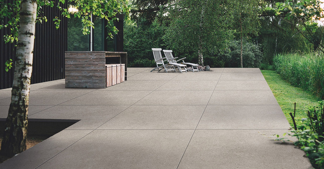 Les grandes dalles, telles que les formats 120x120 cm ou 60x120 cm, sont très demandées pour les terrasses extérieures. Elles offrent une sensation d'espace et de modernité, tout en réduisant le nombre de joints pour une surface plus homogène.